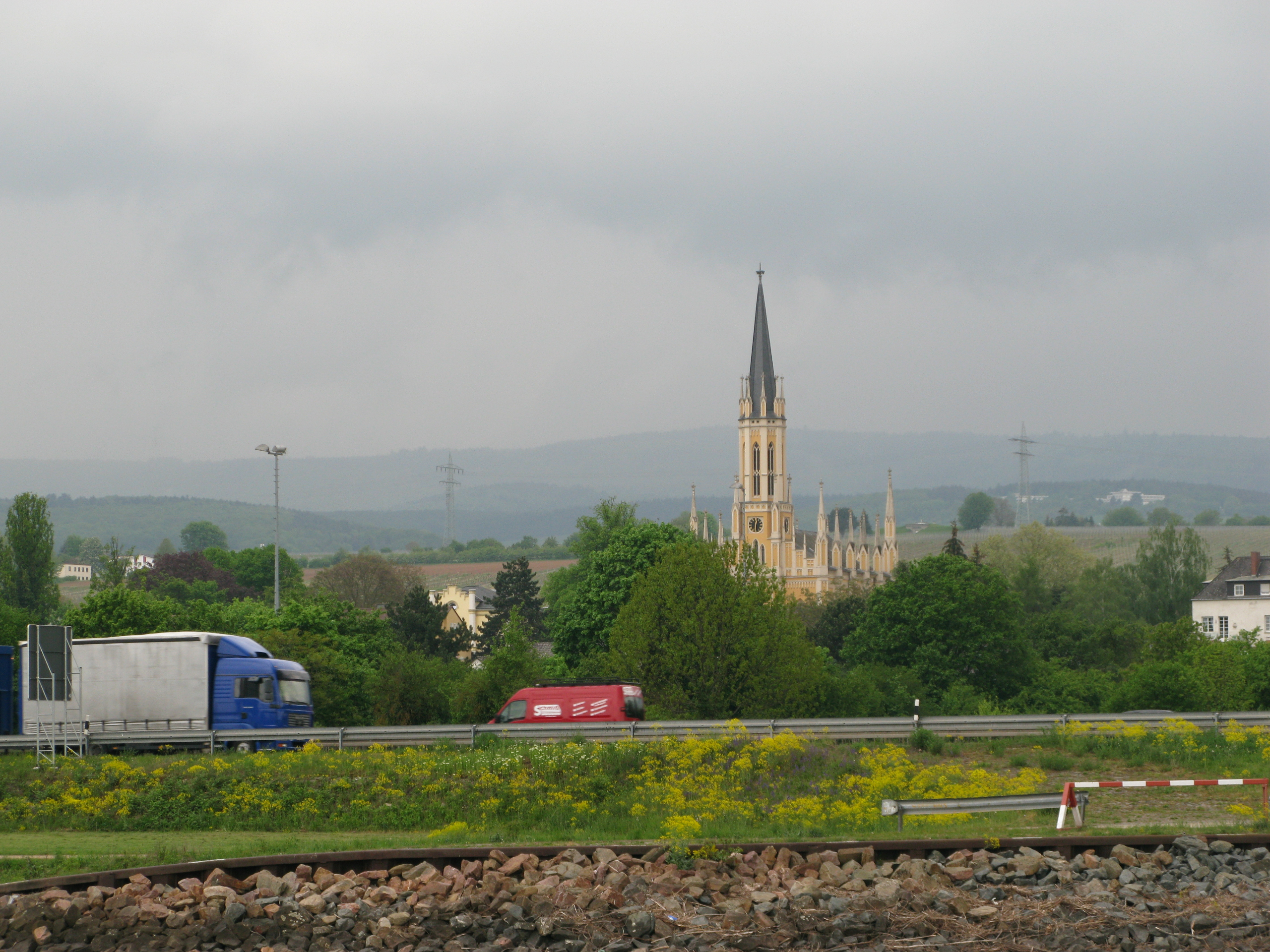 Висбаден один из немногих городов Западной Германии не пострадавший от бомбардировок. Возможно поэтому здесь до сих пор размещается американская оккупационная администрация. На фото Евангелическая церковь в неоготическом стиле.